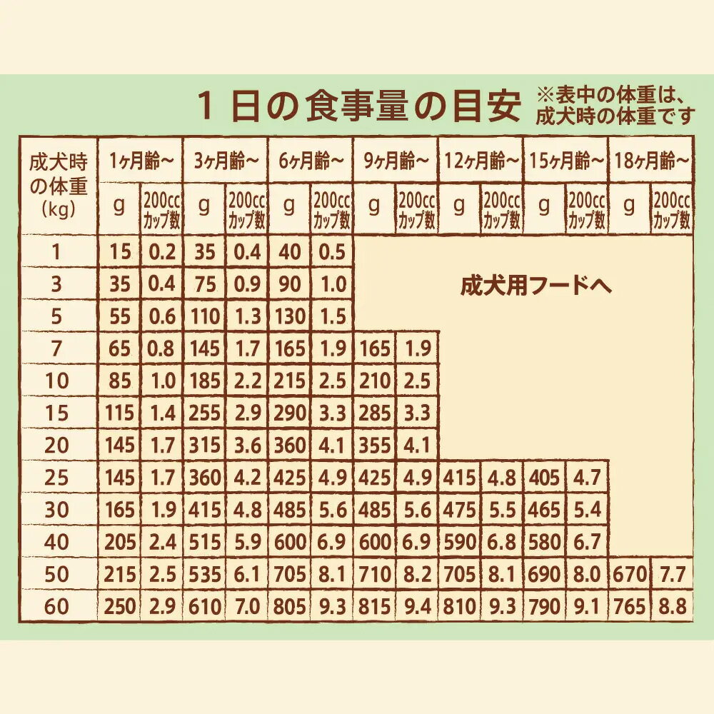 ※本品は、ペットフード公正取引協議会が定める分析試験により、幼犬・成長期の犬・妊娠犬・授乳犬に適したバランスの良い総合栄養食の基準を満たすことが証明されています。